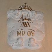 A bőségszaru a környék földjeinek gazdagságát, az arany búzakéve a növénytermesztés meghatározó voltát, a szőlőtő a szőlőtermesztés elterjedtségét, míg a diófa a környéken igen kedvelt, nagy becsben tartott és elterjedt gyümölcsöt jelzi. A rajzon látható zöldellő ágú csonkolt fa a magújulást, a tovább élésben való hitet is jelképezi. A címer fölött görög M és R mássalhangzók Szűz Máriát (Maria), a Q és Y betűk Jézust (qeou uios: isten fia) jelölik.